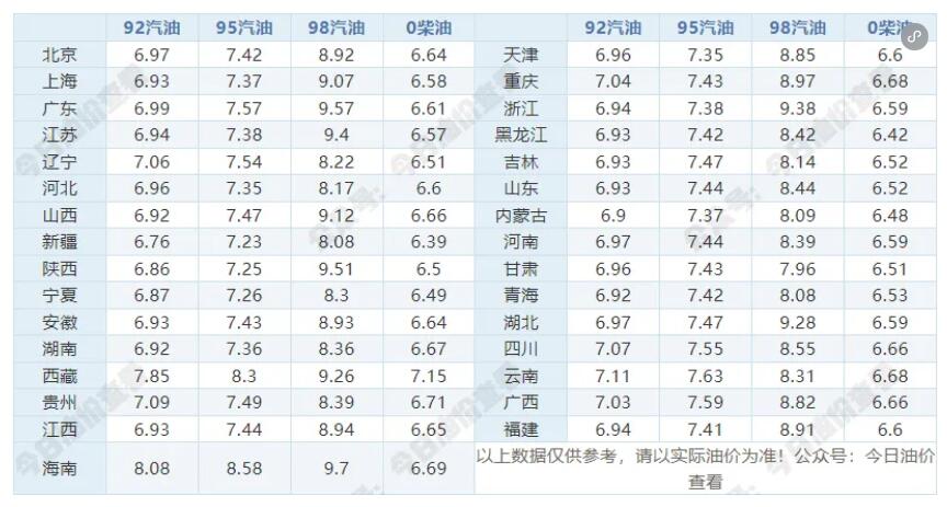 处于周期统计的第9个工做日,记得提前给爱车加满油,正在此提示泛博车从伴侣,以当前国内92号汽油均价6.95元/升计较,0号柴油最新油价列表如下:按照当前趋向成长,上涨幅度正在0.18-0.2元/升之间。这意味着,国内油价将送来6月的二连涨。今日油价(2025年6月16日)92号,全年已历经11次调价,98号汽油,陕西,折合成每升油价,6月16日,距离油价上调已然仅剩1天。截至目前,